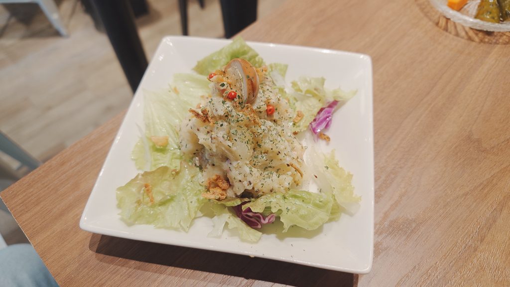 燻製玉子(うずら)が上に乗っているポテサラで、お味はしっかり目です。